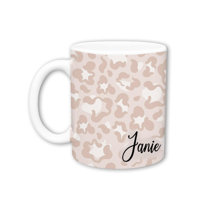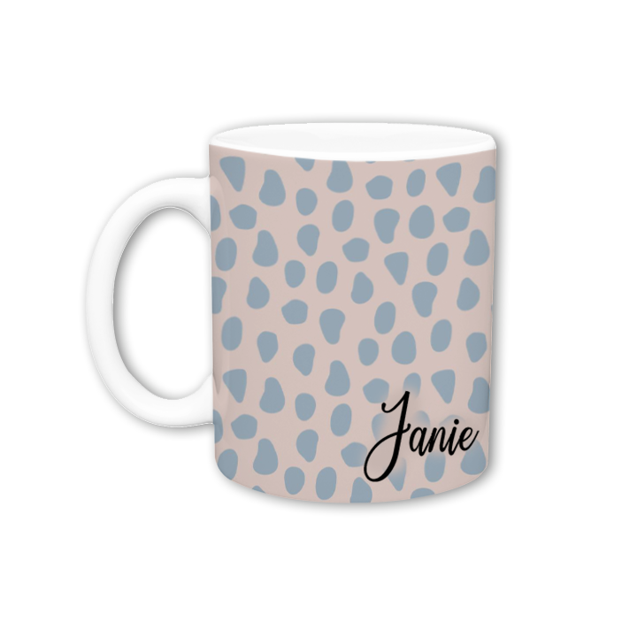 Tan Animal Print and Blue Animal Print wrapped around mug