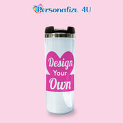This fabulous 15.5 oz travel mug is breathtaking! Not only does it keep your drinks hot or cold for up to 12 hours, it also has a secure, convenient lid. Plus, the user-friendly shape fits perfectly into cup holders. To top it all off, you can customize the pink design - plus add your own text!