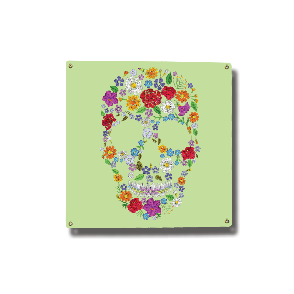 Floral Skull Square Metal Sign