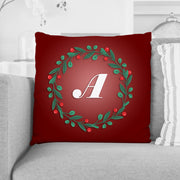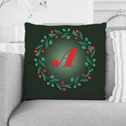 "Christmas Wreath Monogram Pillow" Design on Front, Blank Back