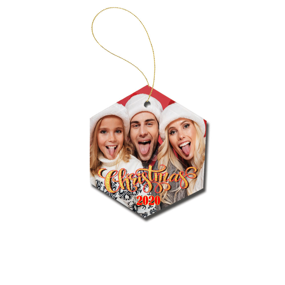 Enjoy the beauty of a one-of-a-kind hexagon glass ornament! Featuring a festive 'Christmas and Year' design on a single side, you can also customize it with your own photo, pattern, design or text - the creative possibilities are endless!