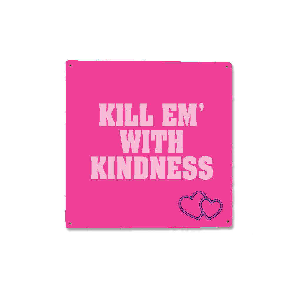 Kill Em' With Kindness Square Metal Sign