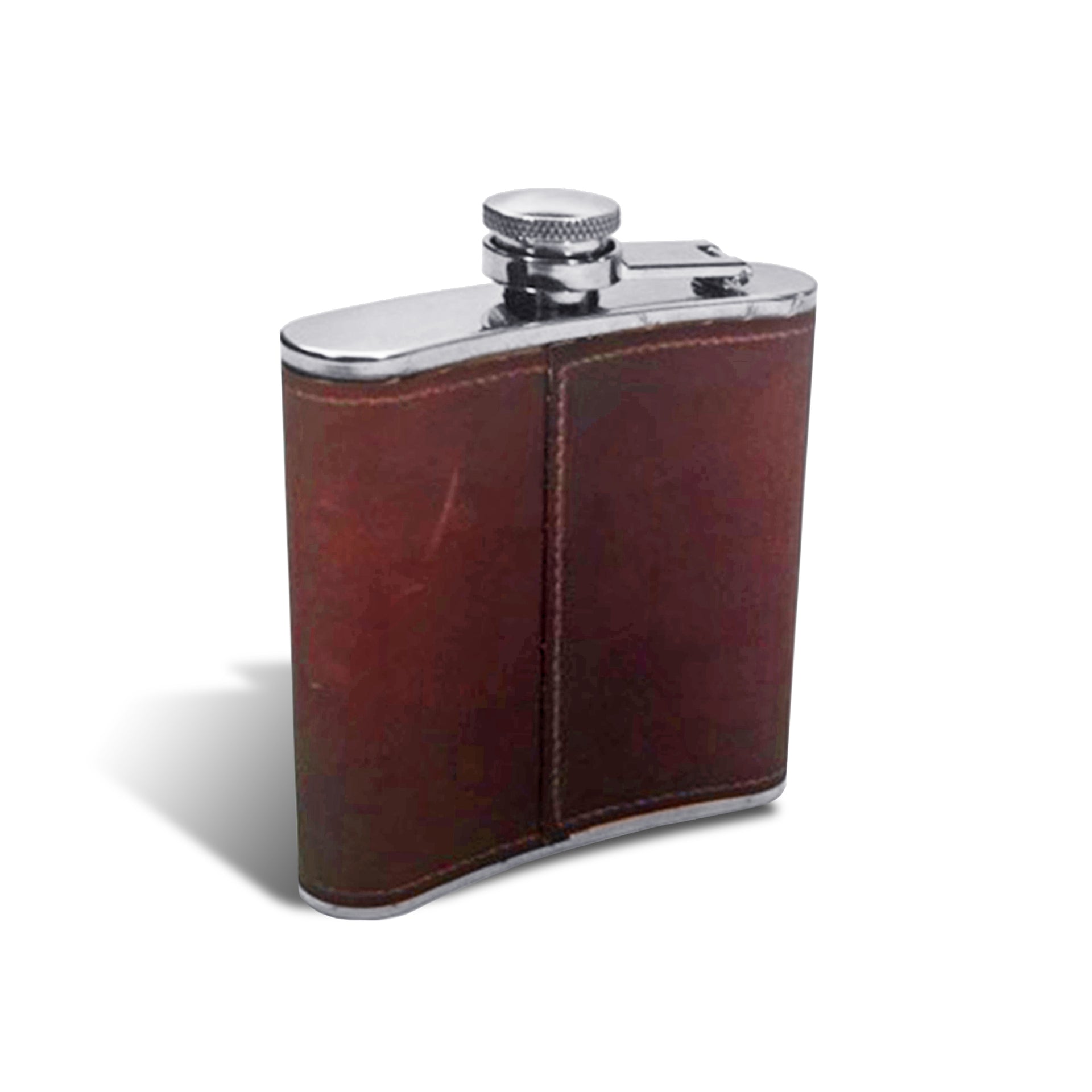 Our concealable, yet voluminous 6oz. Stainless Steel Flask slips easily into a pocket, purse or garter. Each flask is completely personalized soft stitch faux leather jacket. Made from high-quality, food-grade stainless steel, our flasks do not contain BPA or any other toxins. Hinged flask opens easily. Dimensions: 3.75"x3.75"x 0.81", Hand-wash only.