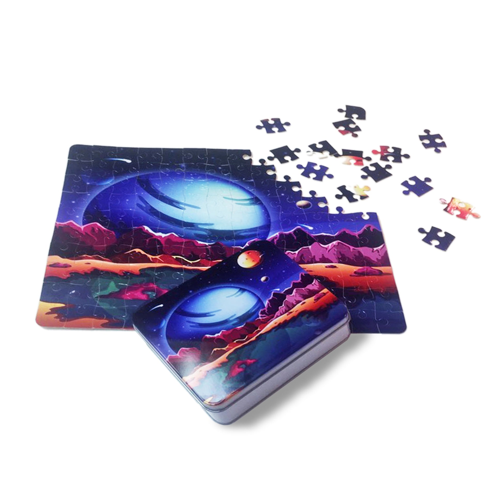 Bring everyone around the table! Our personalized puzzles include 130 pieces, packaged in a decorative tin box with a reference lid. The puzzle is made of a heavy-weight cardstock and every 1" piece shines with a glossy finish.